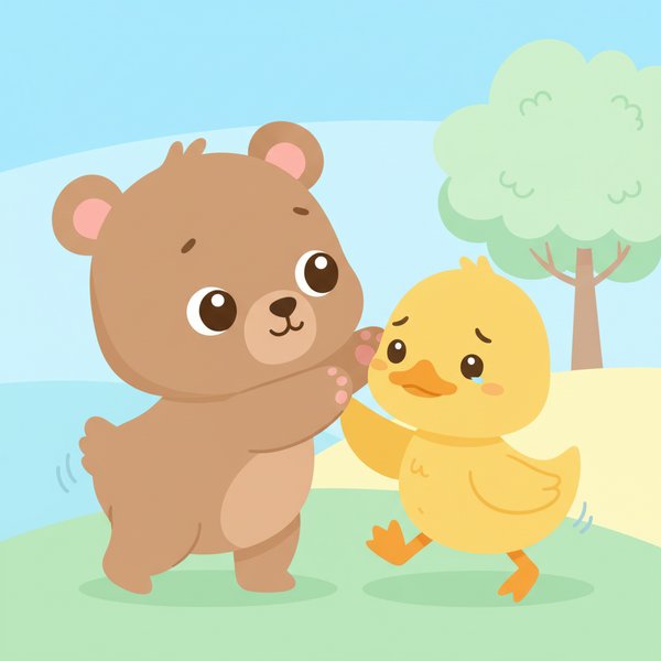 "scenario_text": "This bear cub is pushing the duckling away",