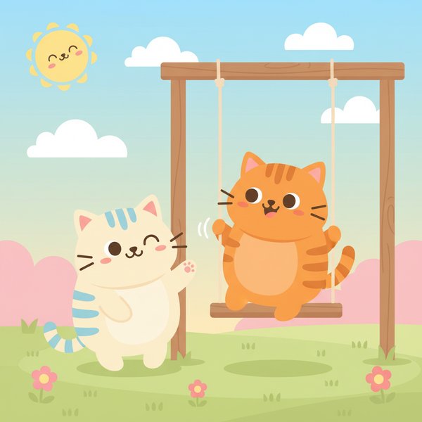 "scenario_text": "These kittens are taking turns on the swing!",