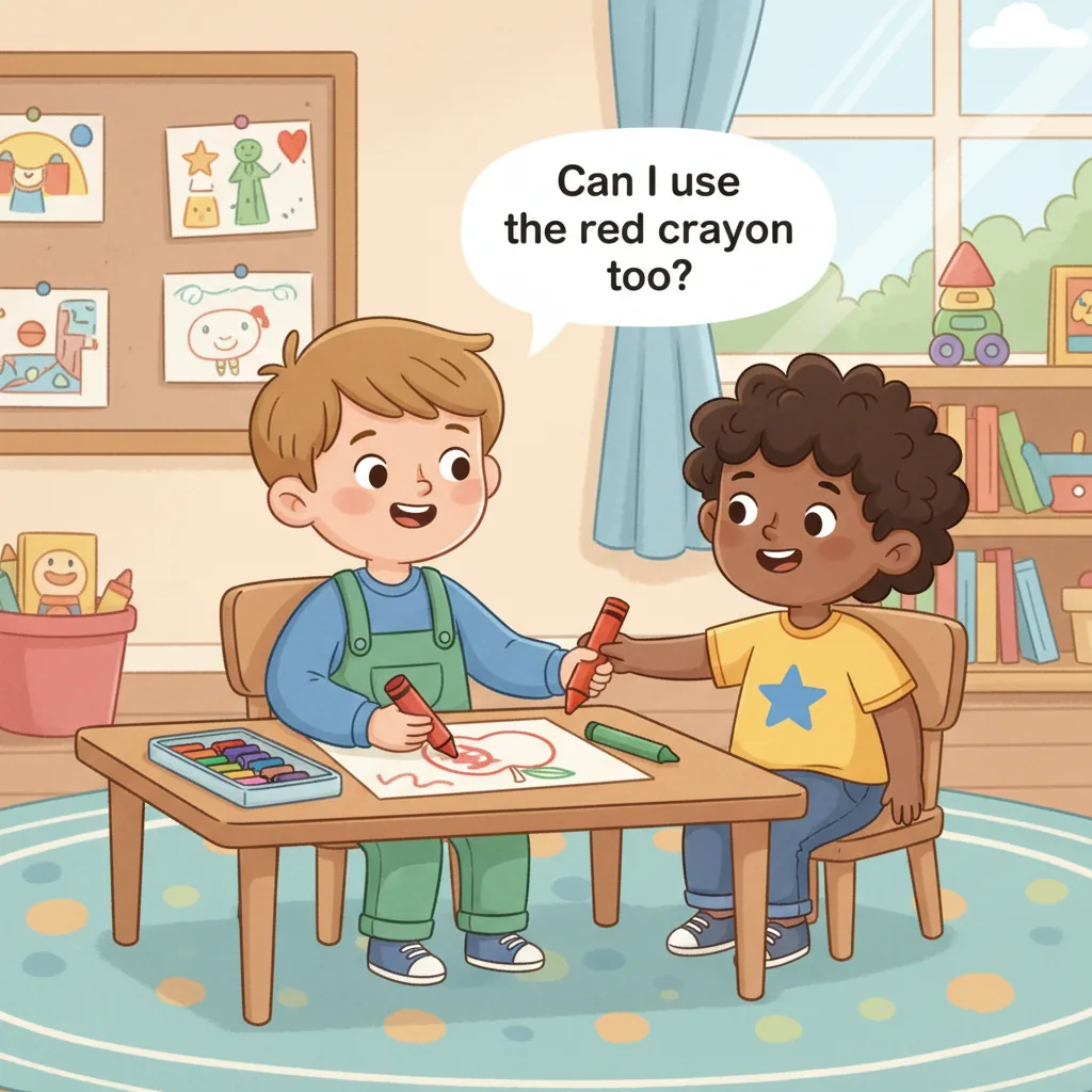 "scenario_text": "Your classmate is talking and sharing something. You really want to say something too, but it’s not your turn yet.",