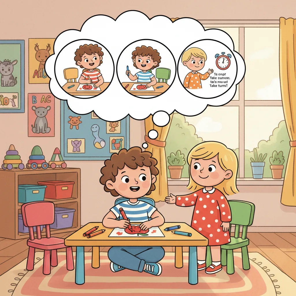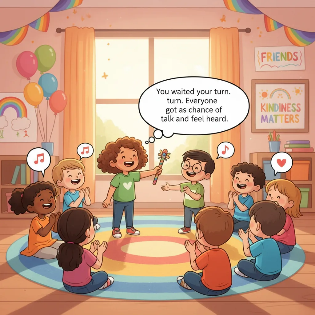 "reflection_child_prompt": "How do you think your classmate feels when you listen and wait your turn?",