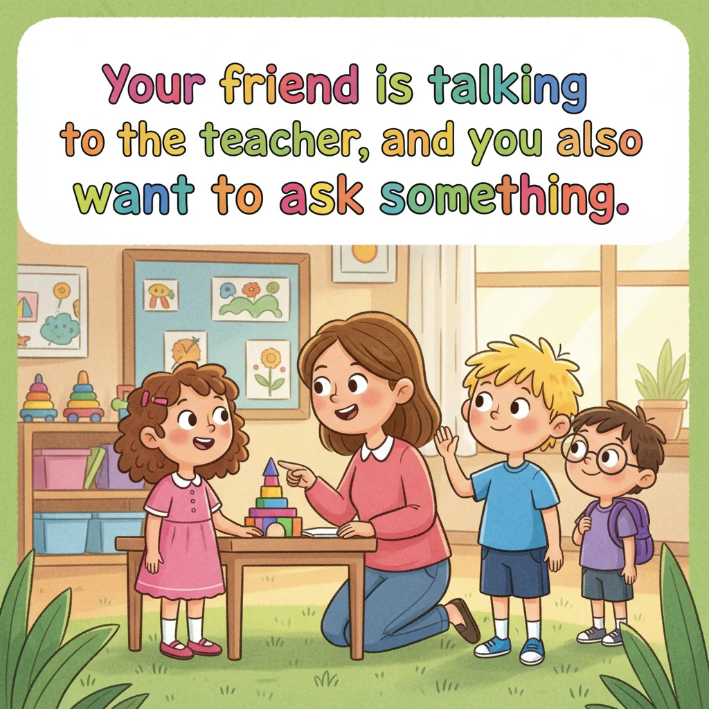 "en": "Your classmate is talking and sharing something. You really want to say something too, but it’s not your turn yet.",