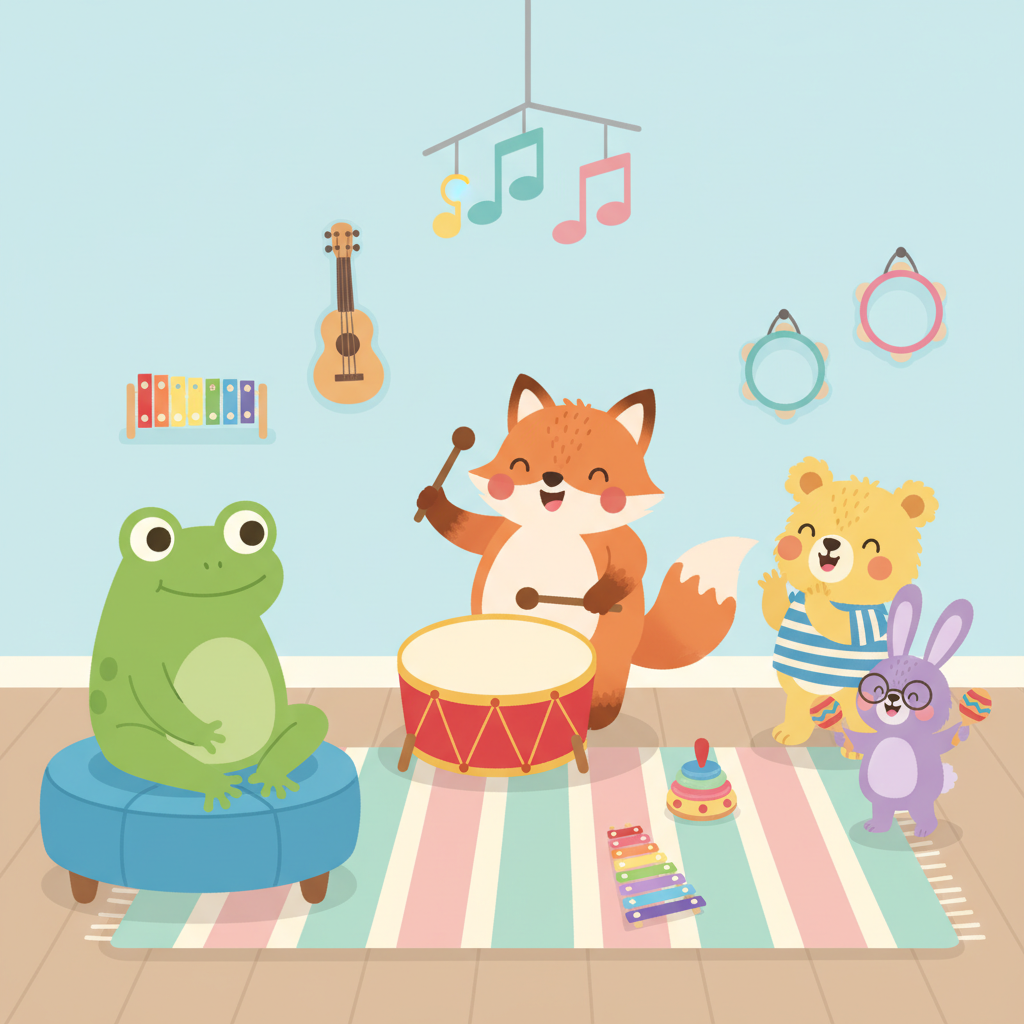 "scenario_text": "The frog hasn't had a chance to play the drum yet!",