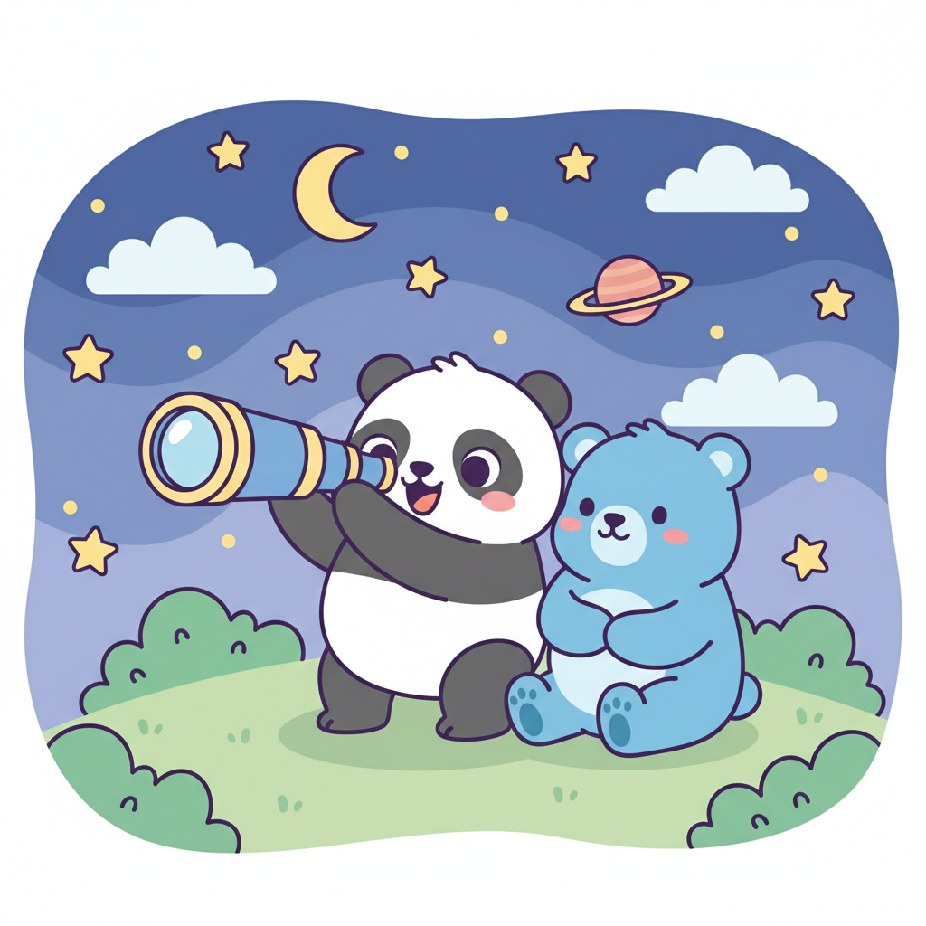 "es": "¡El panda está emocionado de probar el telescopio!",