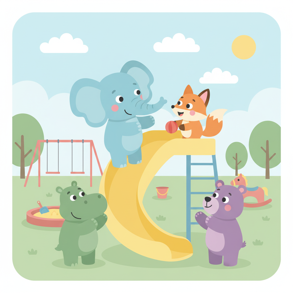 "scenario_text": "The elephant let you go first on the slide!",