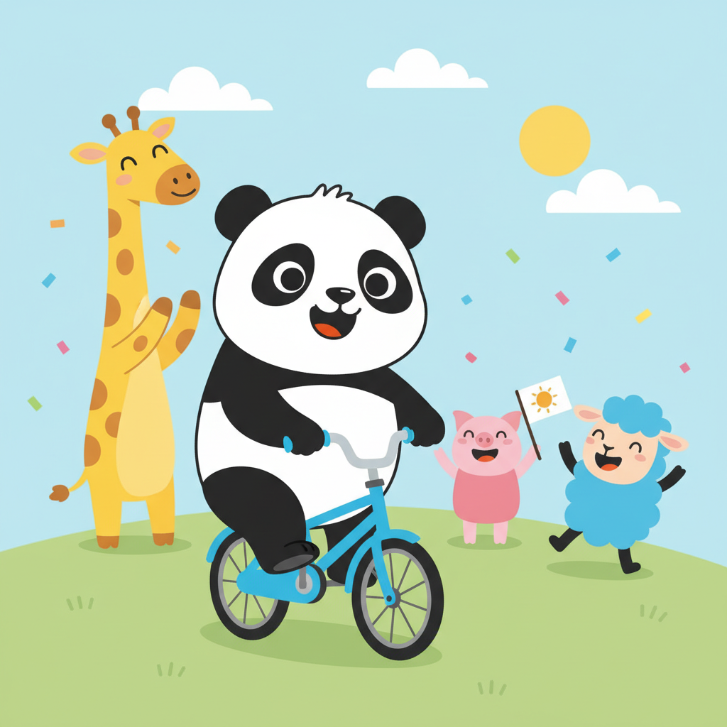 "scenario_text": "The panda finally learned to ride a bike without help!",