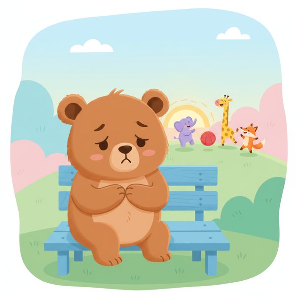 "scenario_text": "The bear cub looks sad and lonely",