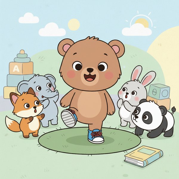 "scenario_text": "The bear cub learned to tie his shoes!",