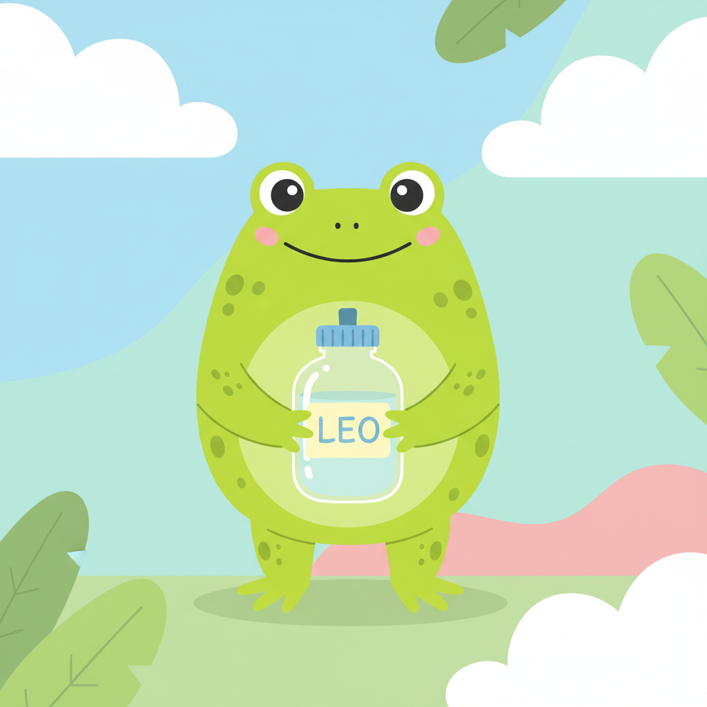 "ar": "الضفدع لديه زجاجة ماء خاصة به عليها اسمه",