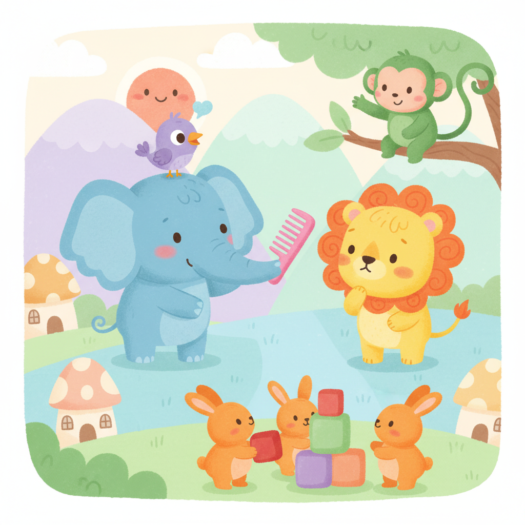 "scenario_text": "The elephant has his own comb for his hair",