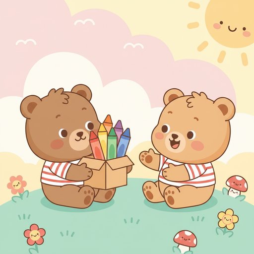 "scenario_text": "This bear cub has lots of crayons and a friend has none!",