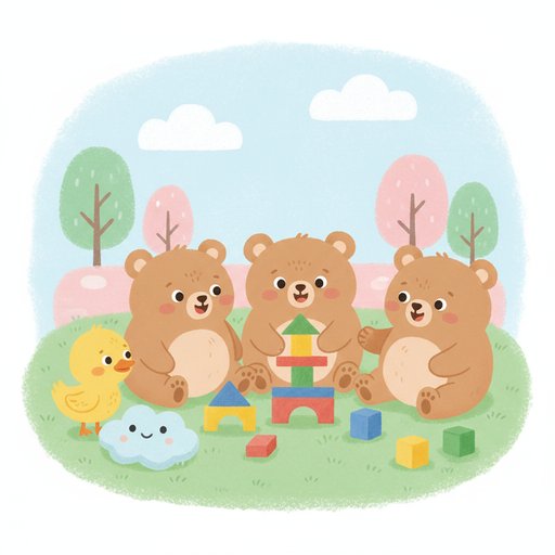 "scenario_text": "These bear cubs have blocks and the duckling wants to build too!",