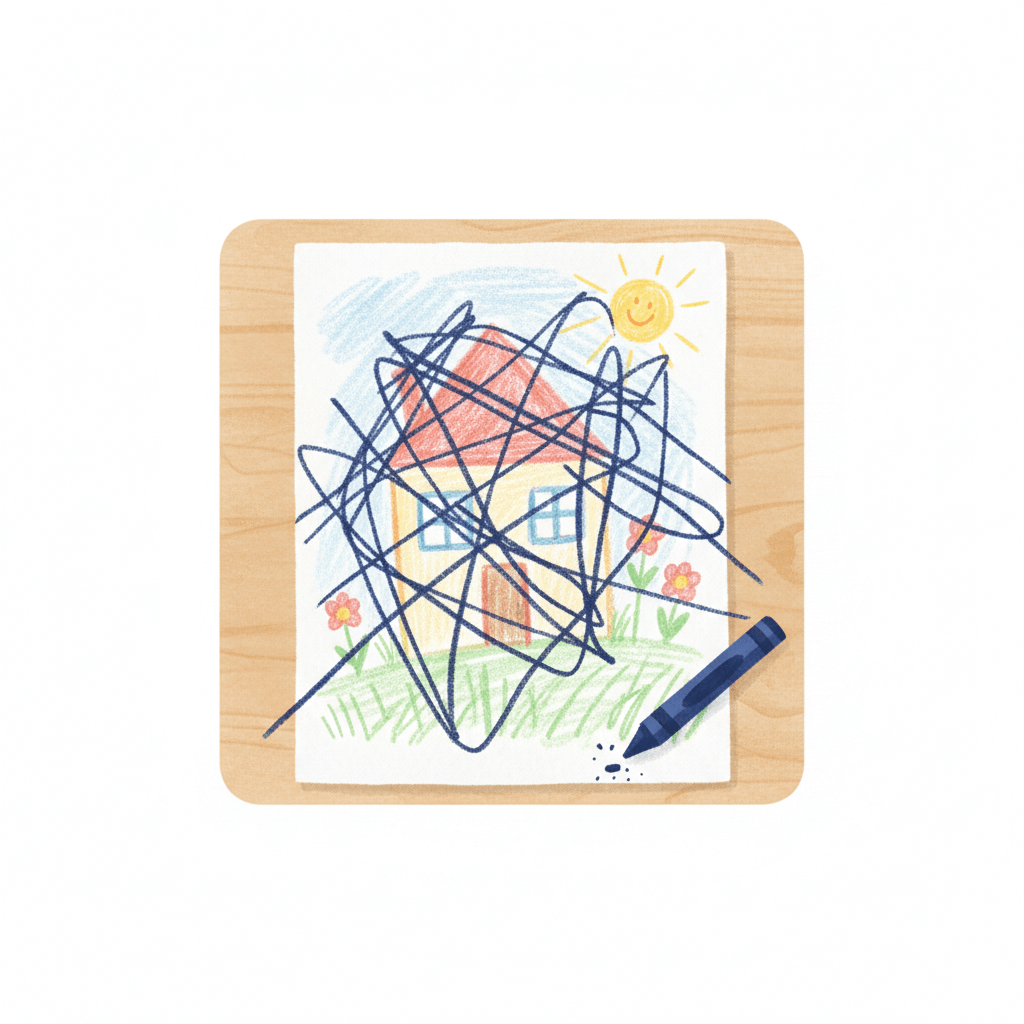 "en": "Your little brother scribbled all over your drawing.",